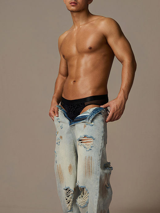 Wild Roar — Sexy Leopard-Print Tulle & Mesh Low-Rise Men’s Brief