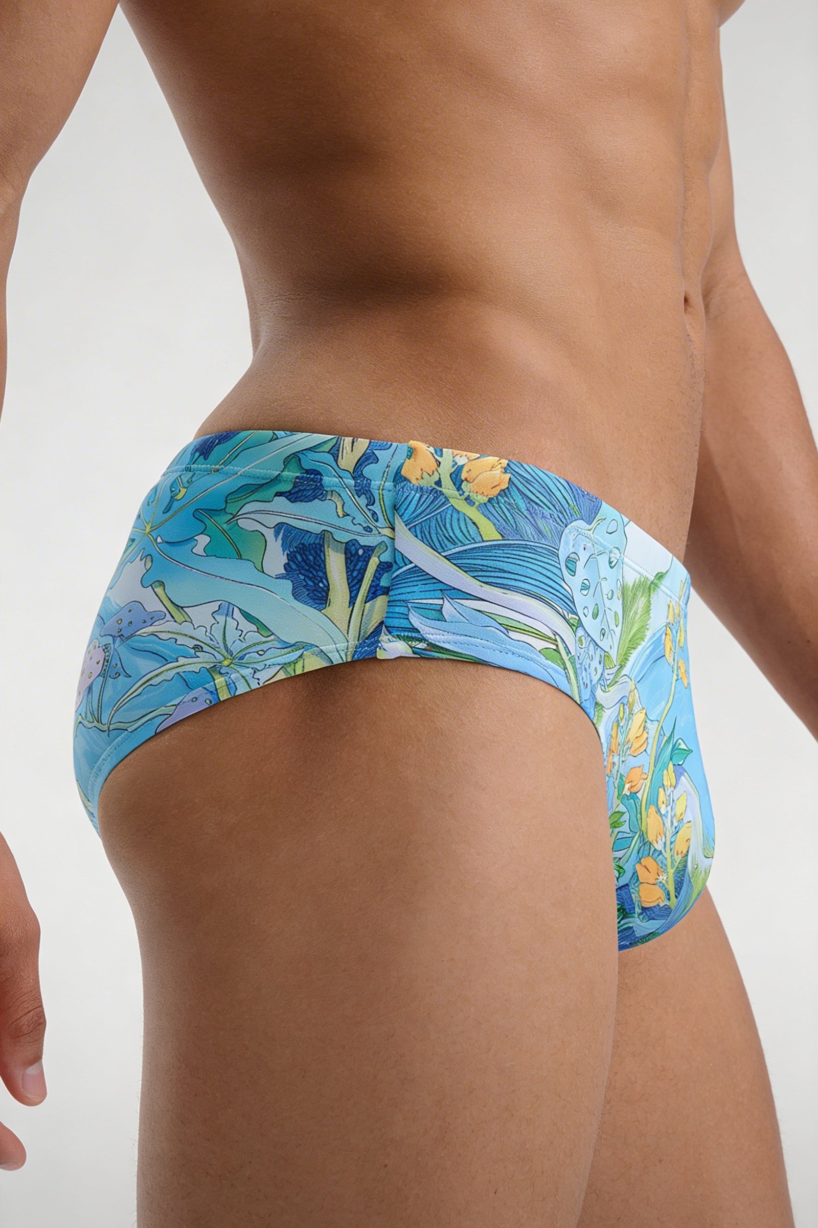 Swimwear – Ocean & Tropical Plants botanical print Lifeguard Brief